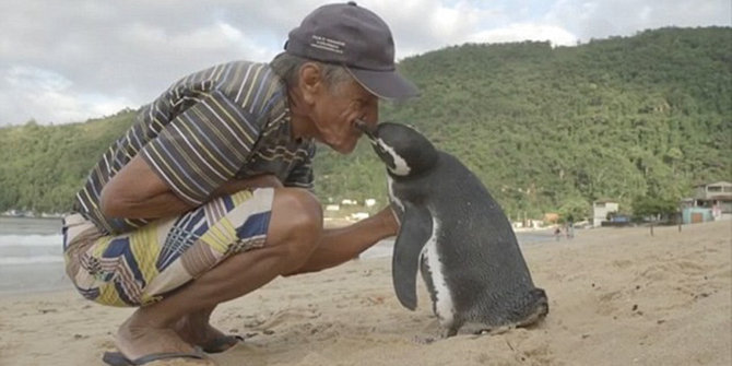 Benar-benar mengharukan, pinguin ini sampai berenang 8.000 km setiap tahun demi menemui sahabat manusianya. Dindim si pinguin tampaknya terlanjur sayang kepada Joao Pereira de Souza. Pasalnya de Souza sudah menyelamatkan nyawanya.