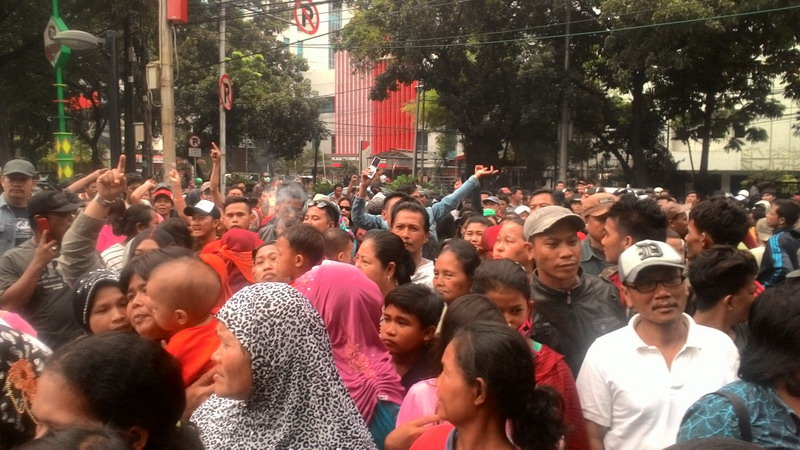 Ratusan warga Kalijodo mendatangi gedung DPRD DKI, Kebon Sirih, Jakarta Pusat untuk meminta kepada anggota dewan untuk membatalkan rencana penggusuran kawasan Kalijodo yang diwacanakan Gubernur Basuki Tjahaja Purnama (Ahok). Massa juga berteriak-teriak mencari orang nomor satu di Ibu Kota ini.